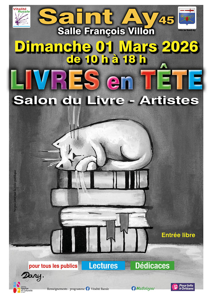 Après Ormes le 8 février (45) et St-Ay (45), on devrait me voir à Orléans (45) en avril, Limoges (87) en mai, Lestiou (41) en juin, Ingré (45) en octobre, etc. Ne manquez pas ces rendez-vous, qui seront présentés régulièrement sur ce site, et annoncés sur les réseaux sociaux (Facebook, Instagram).